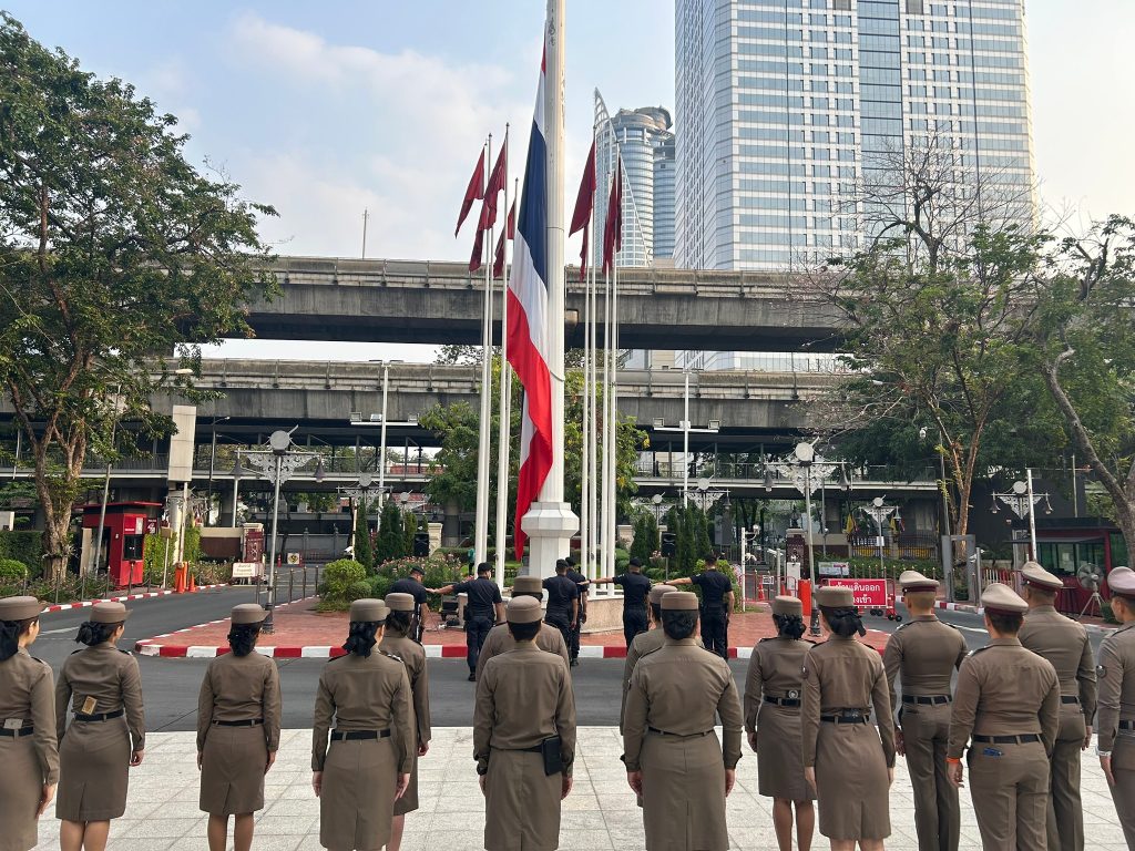 กิจกรรมเคารพธงชาติ 19 กุมภาพันธ์ 2568 โดย admin / ข่าวประชาสัมพันธ์,ข่าวกิจกรรม ข้าราชการตำรวจกองแผนงานกิจการพิเศษเคารพธงชาติ ในวันที่ 19 ก.พ.68 เวลา 08.00 น จำนวนผู้เข้าชม : 26 Facebook iconFacebookTwitter iconTwitterLINE iconLine